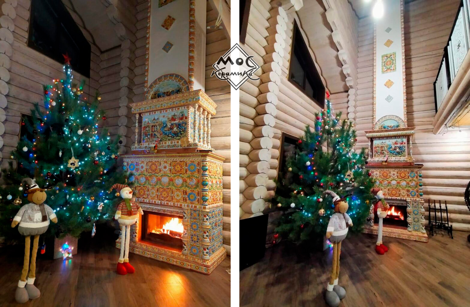 И такой славный изразцовый камин получился в результате, что ни вздумать, ни взгадать, только в сказке сказать! Весёлой, пёстрою стеной украшает этот терем расписной интерьер наших заказчиков, а мы искренне желаем им жить-поживать, греться у камина да добра наживать.
