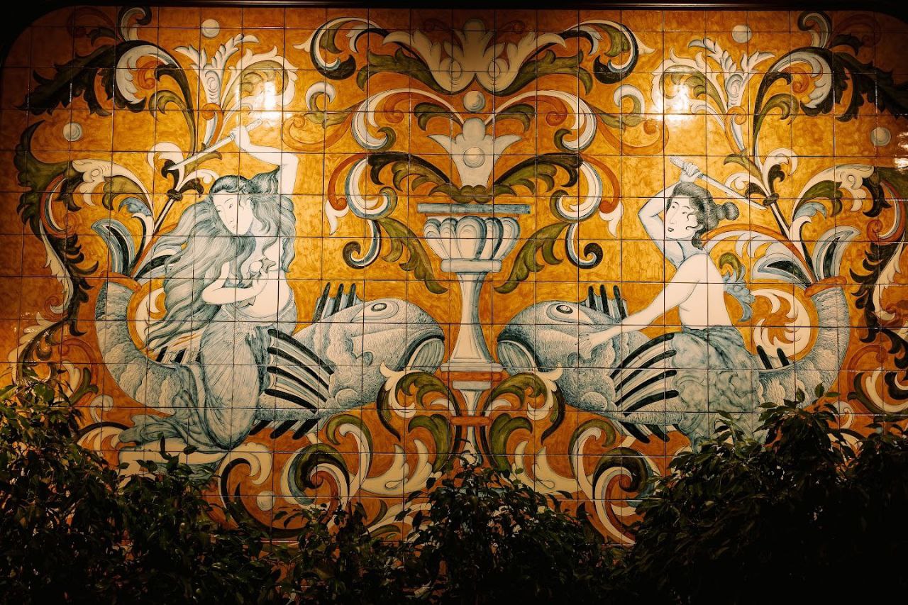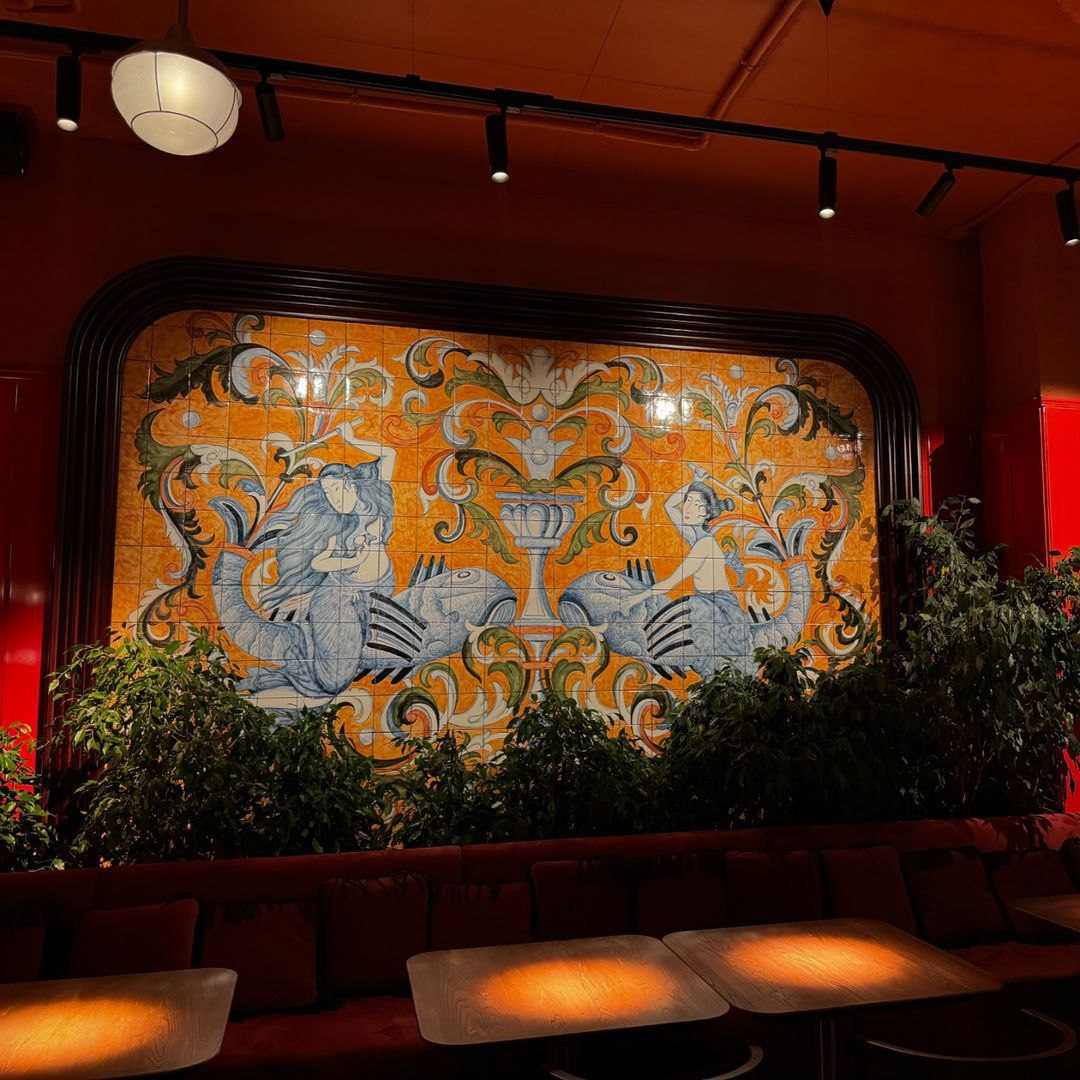 Панно создано вручную: каждую плитку наши мастера рисовали своими руками, вкладывая в работу душу и уделяя особое внимание деталям. Мы считаем, что именно такие элементы создают уникальную атмосферу в ресторане✨
