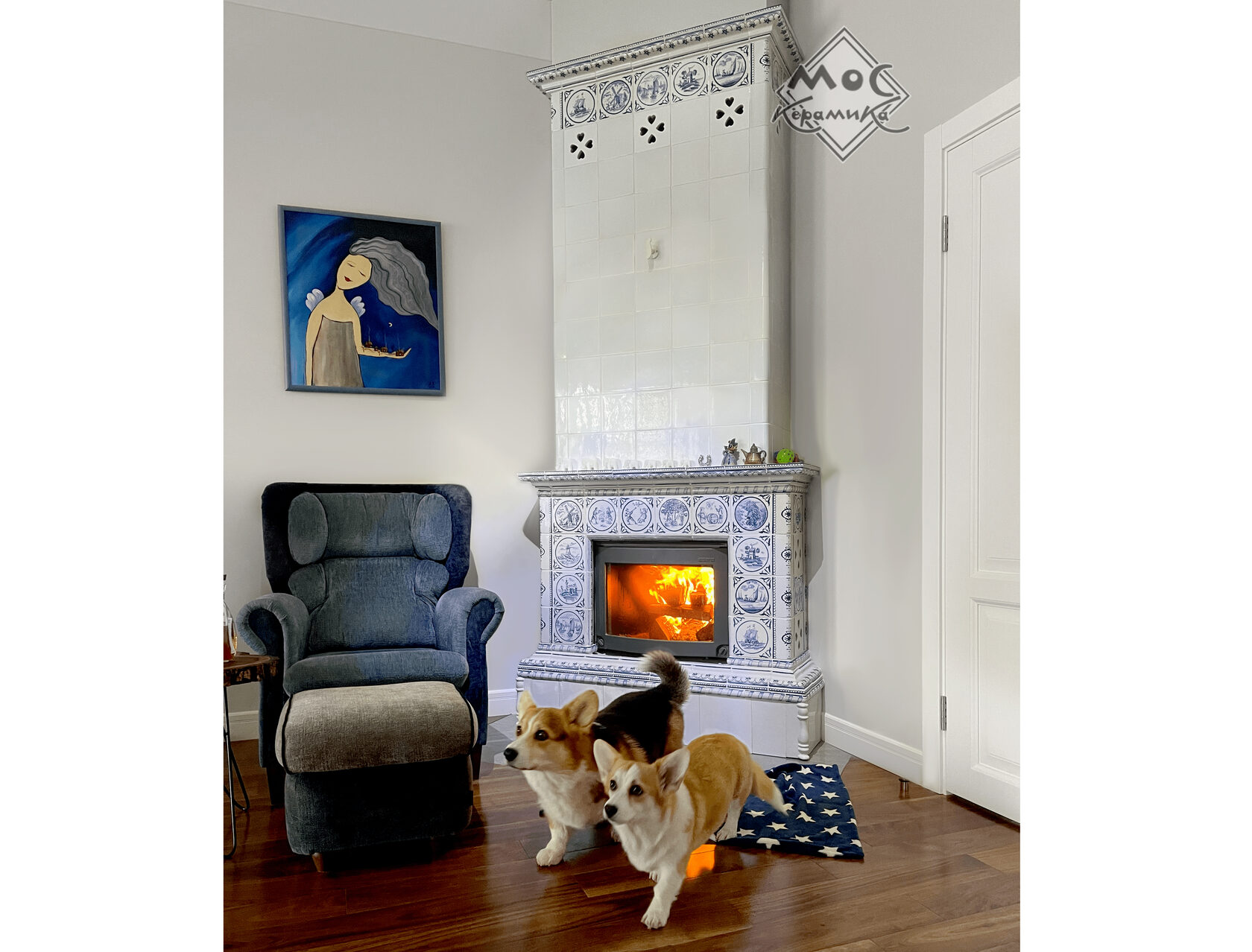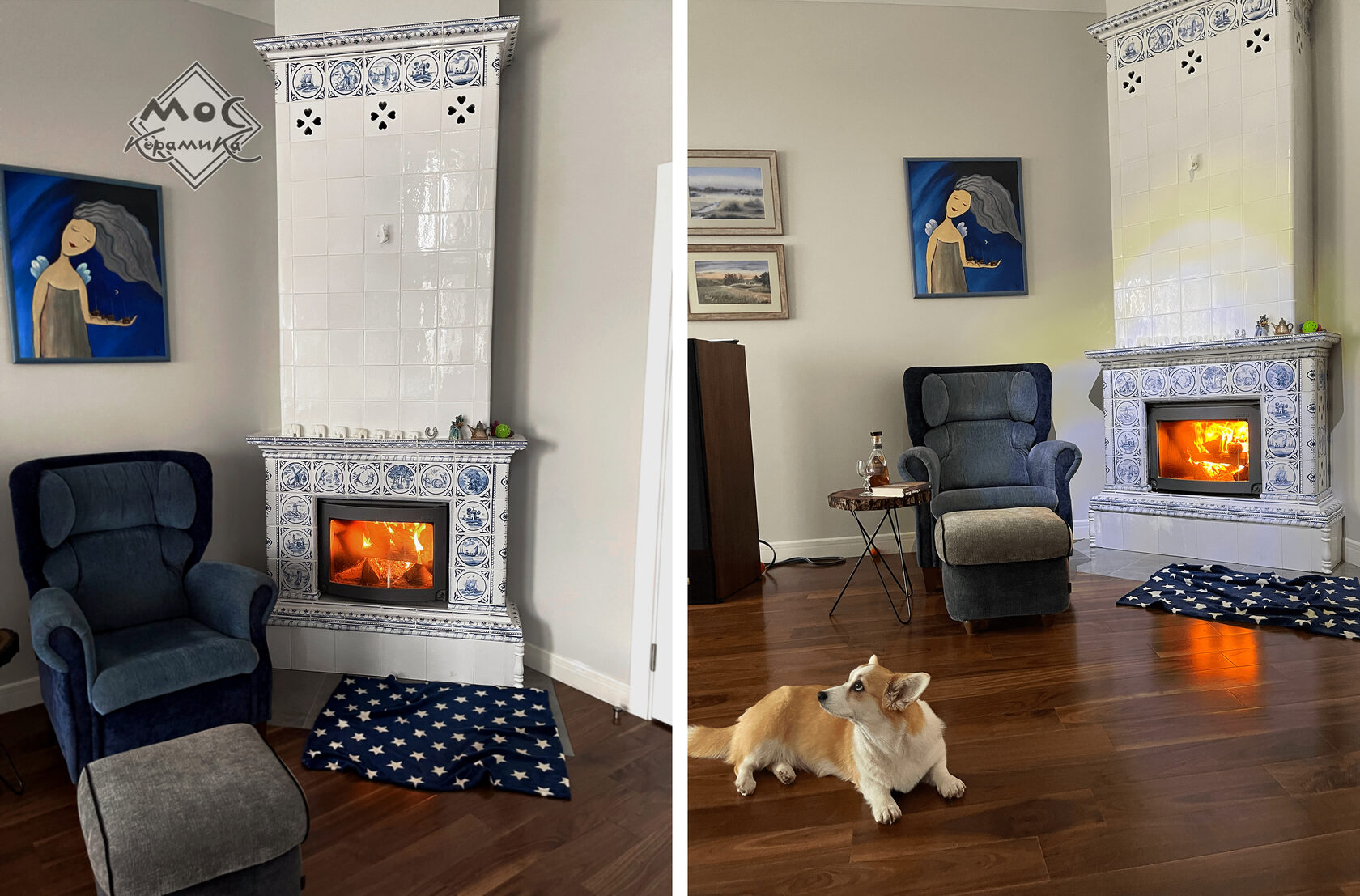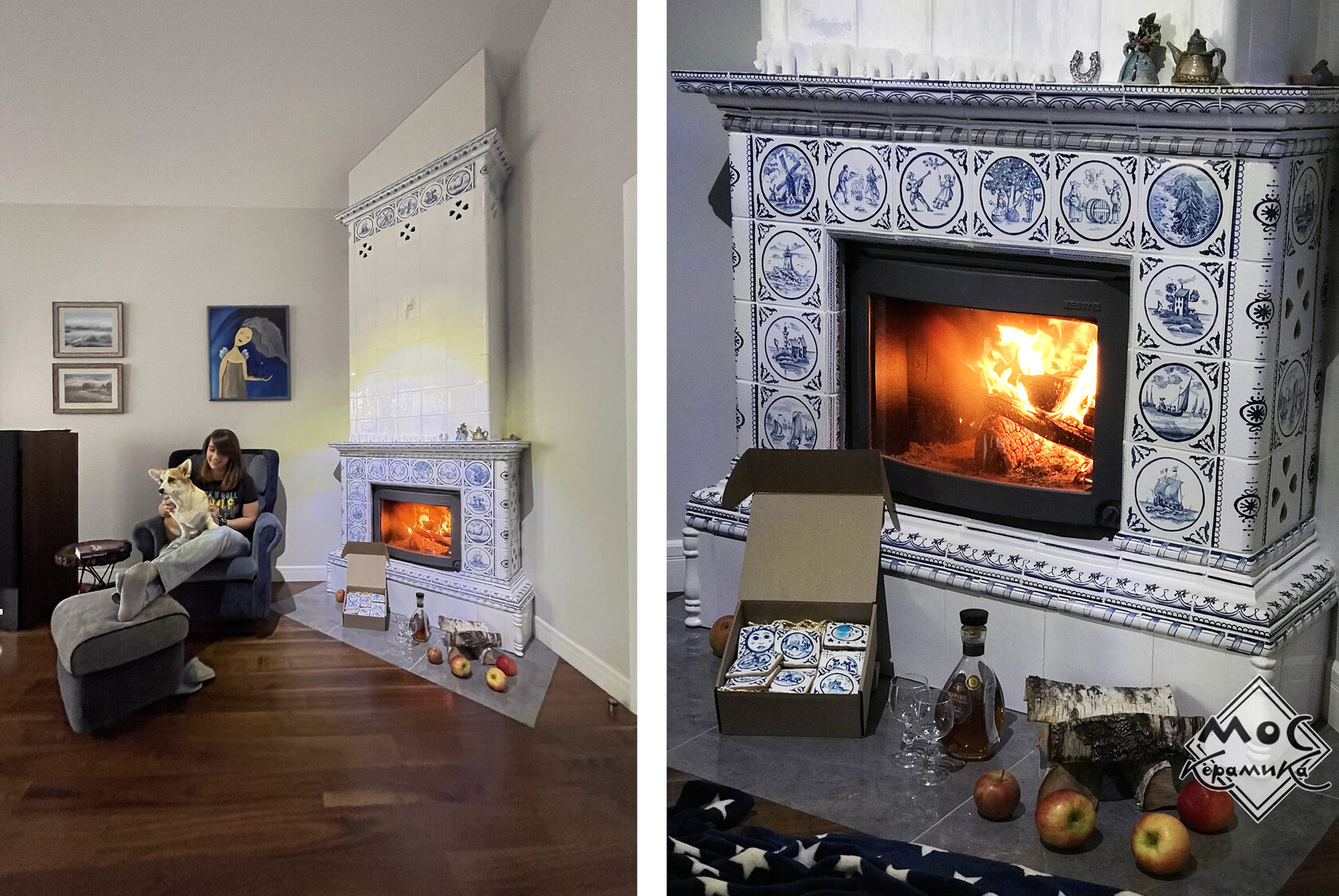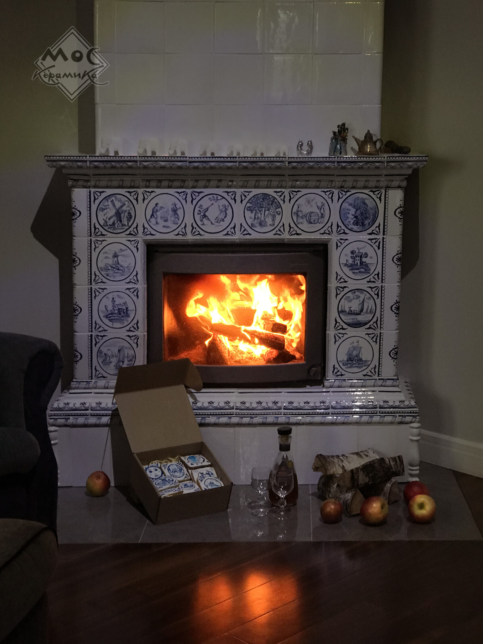 Этот камин стал центральным акцентом дома наших любимых заказчиков, семейной пары из Грузии. На каждой плиточке - уникальный сюжет, часть которых разработана заказчиками и запечатлела памятные для них места и моменты.