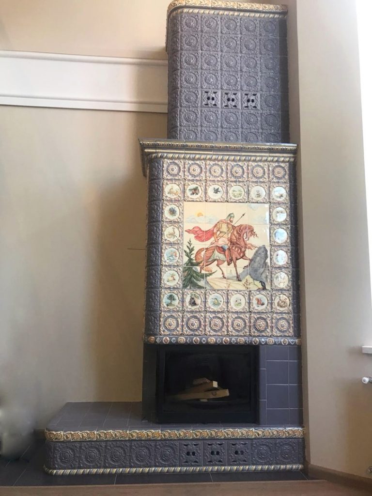 Вот и наша заказчица посчитала такое размещение наиболее альтернативным. А пока мастера-печники возводили портал и дымоход, мы согласовали проект по облицовке камина изразцами.